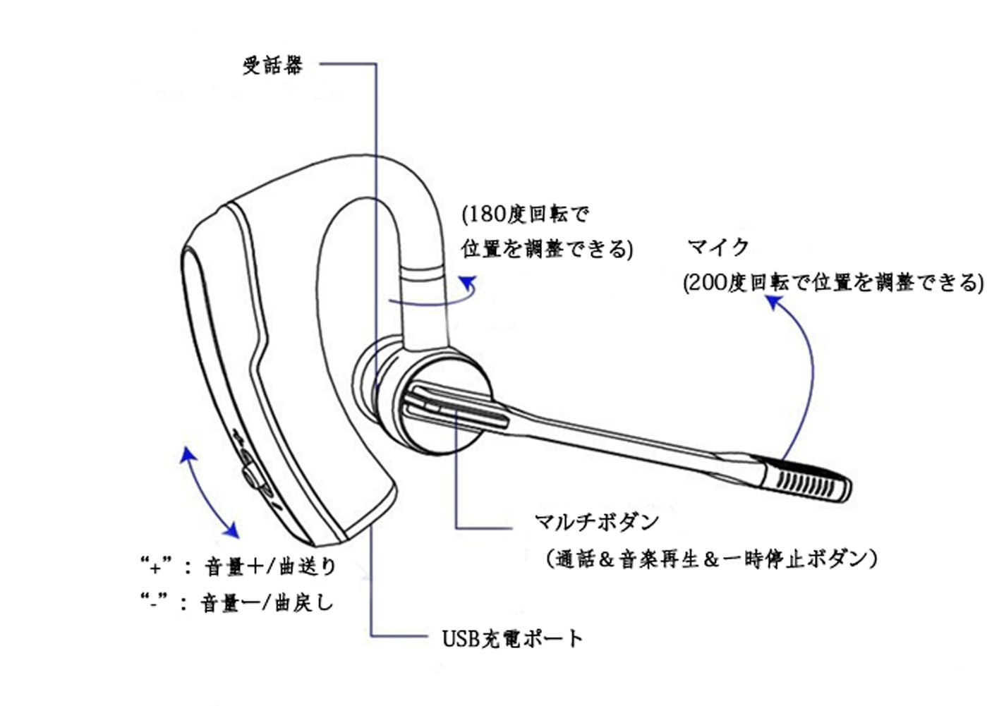 回転可能 受話器が200度回転でき、上下の移動にも対応できますので、どんな姿勢でも大丈夫です。 それに他の物に比較し、マイク部分が口元まで届くのでクリアな音声で通話できる!それに、マイクの位置を動かせるので、使わない時は目立たない角度にできます。